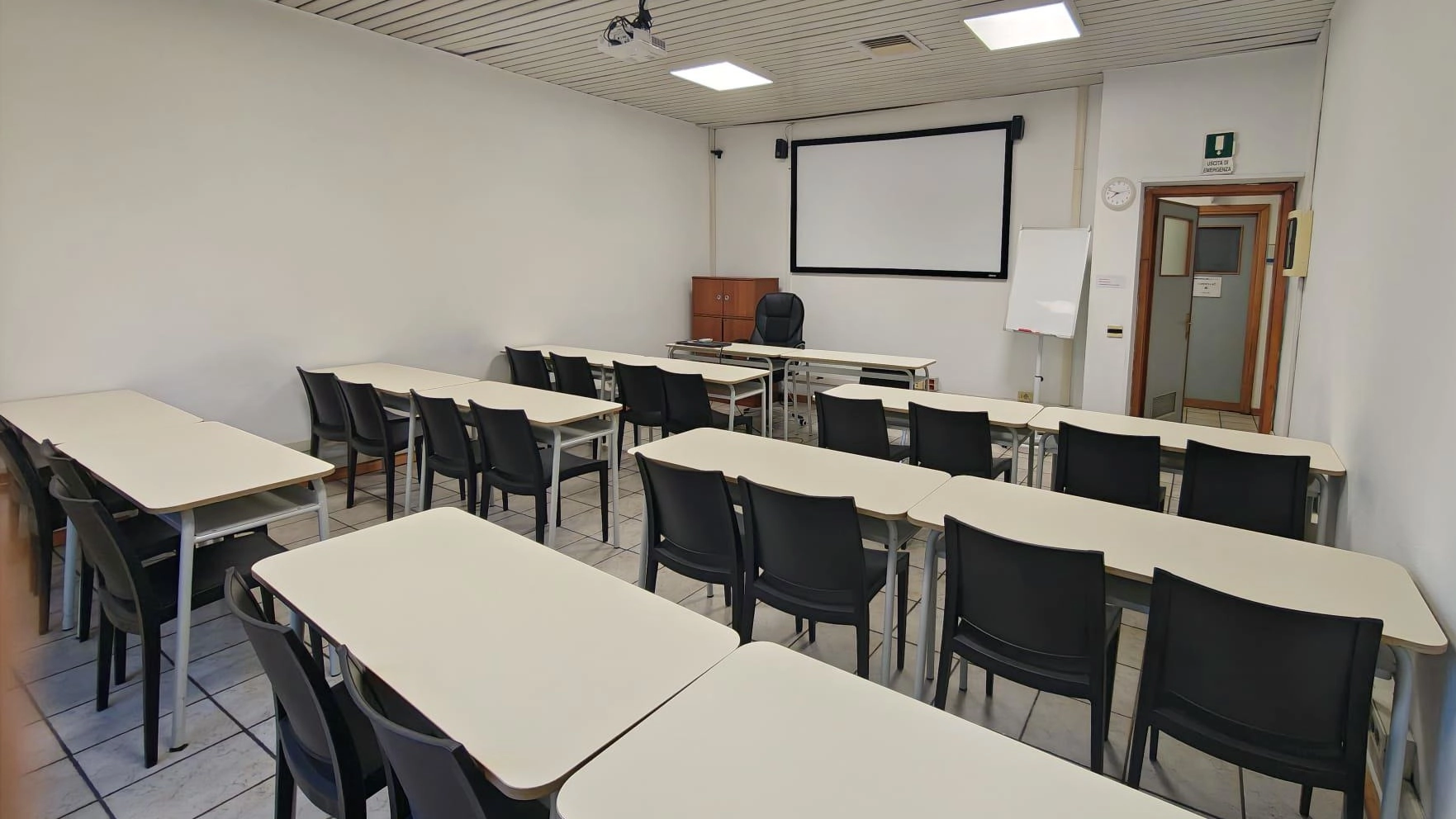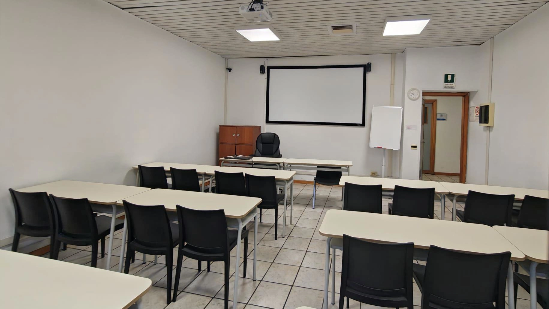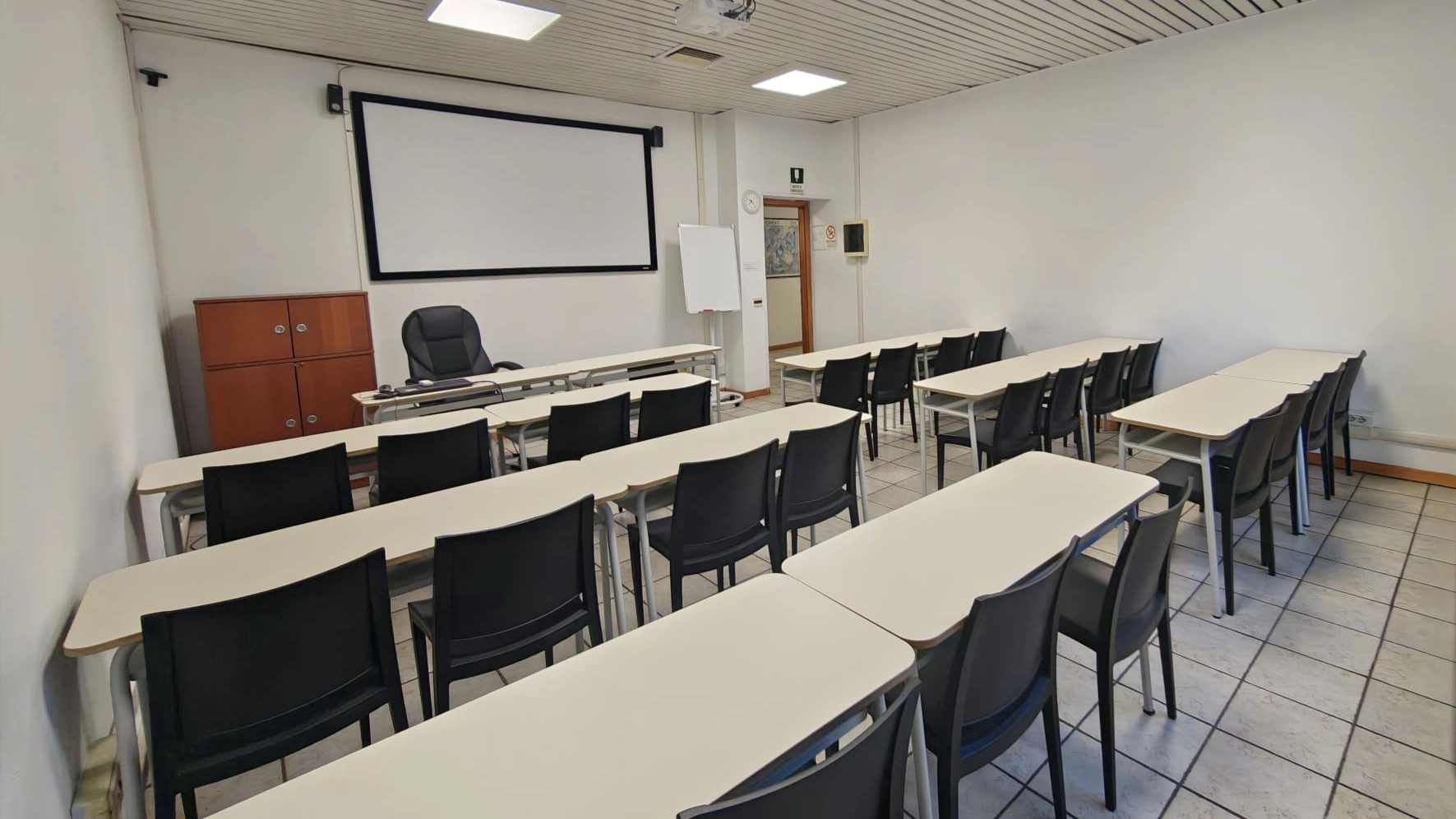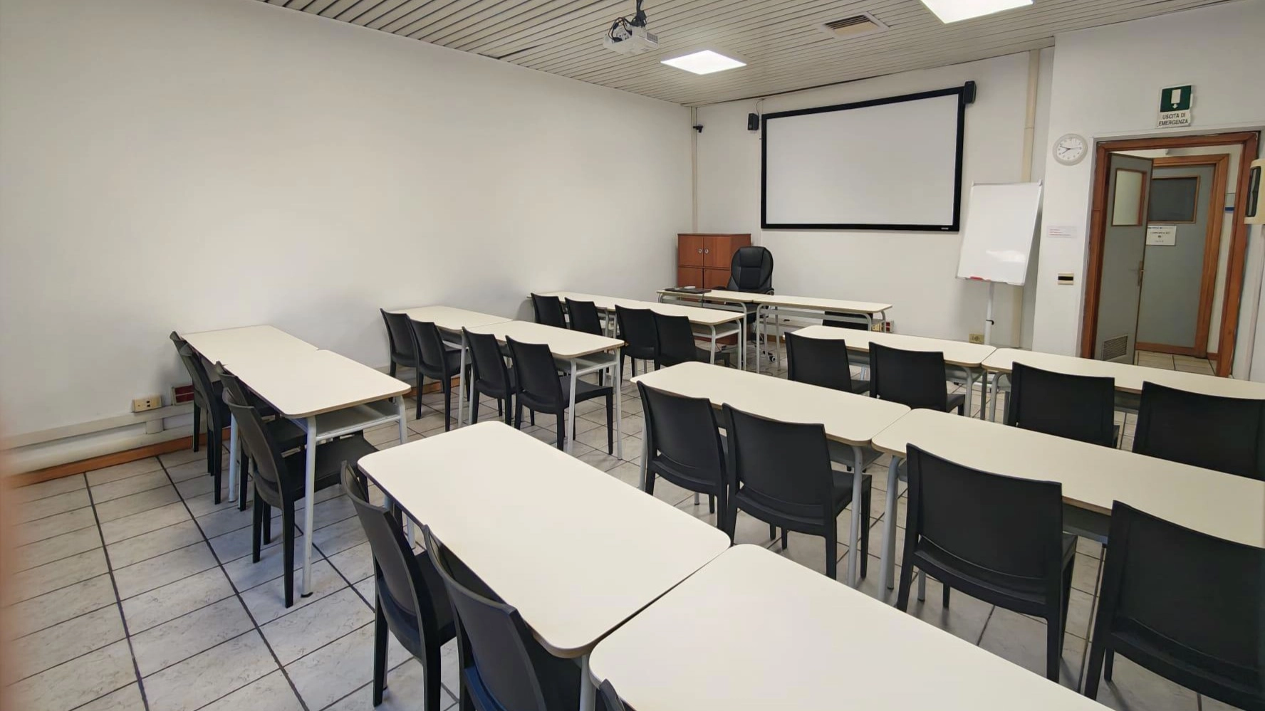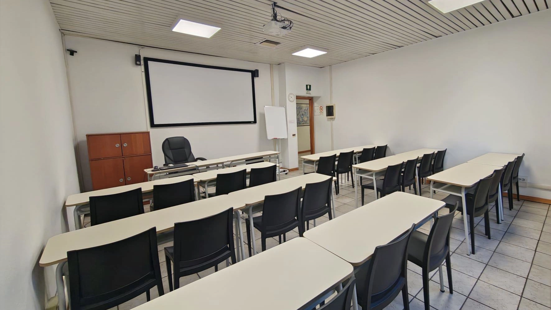 L'affitto include l'uso di Wi-Fi 6 in fibra ottica, aria condizionata e il setup tecnico base (Schermo, Videoproiettore, Webcam, Impianto audio diffusione, Wi-Fi diretto, Tavolo relatore, Lavagna bianca). Su richiesta è disponibile assistenza tecnica dedicata in sala.